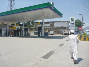 So I pulled a U-ie in the first available sq. cm. of traffic space and headed the 5-6km back into anarchy of Abbottabad traffic. Back past the Shell pump with no petrol (shades of Slim Dusty’s “Pub with no beer”). Further back past the PSO on the opposite side of the road. As this was the main north/south highway there was a 30cm-high median strip to discourage the worst of the lane-jumpers, so there were limited opportunities to turn around. Back to the main intersection where I was able to do another U-ie and head back north again. As I got back to the PSO, miraculously, most of the queue had disappeared AND they still had petrol.