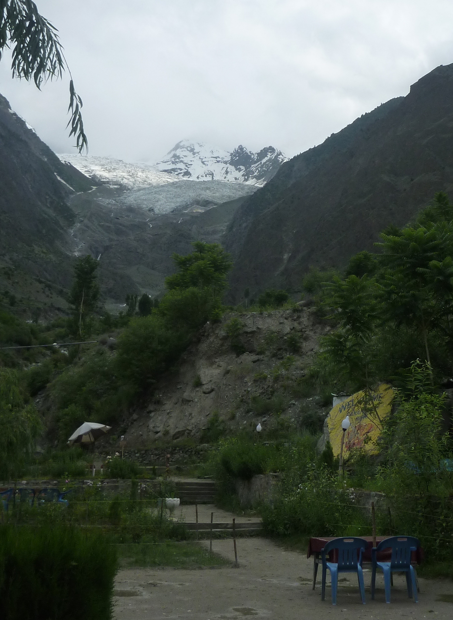 Finally I was free to continue the last part of the day’s journey. A few kilometres after the roadblock, I stopped at the well-known Rakaposhi View Café. The garden here gives the first glimpse of Rakaposhi (7790m) – just one of the many peaks over 7000m in the Karakoram Range. After another warm, flat Pepsi it was onwards to Karimabad.