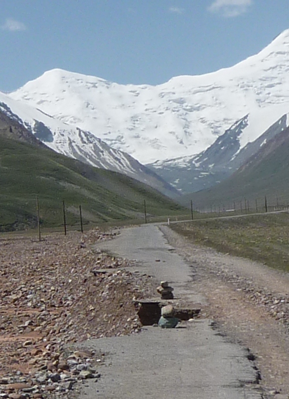 I arrived at the Kyrgyz border post at Bor Dobo about 11:30am: Formalities took a staggering 15min and I only had about 15km to cover before I reached the actual border at Kyzyl Art Pass. The road to the pass deteriorated even further and it was back to a 1st gear crawl. Kyzyl Art Pass is quite high at almost 4300m but neither the bike nor I suffered any ill-effects from the altitude. Maybe the dried apricots worked after all – or the Diamox tablets.
