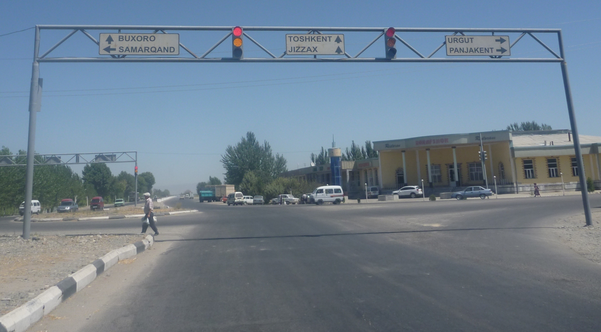 Strictly speaking I wasn’t travelling on Flecker’s road at all. His romantic vision of Hassan and Ishak’s caravan heading for Samarkand left from Baghdad in the west and travelled across the deserts of Persia. I was approaching from the south but, no matter, it was close enough for me. I was only 90km, or an hour’s ride from Samarkand. Unfortunately, there is nothing romantic or golden about the road now. It is still a major trade route but the bells no longer beat softly through the silence. It is more a case of the horns blare loudly through the chaos.