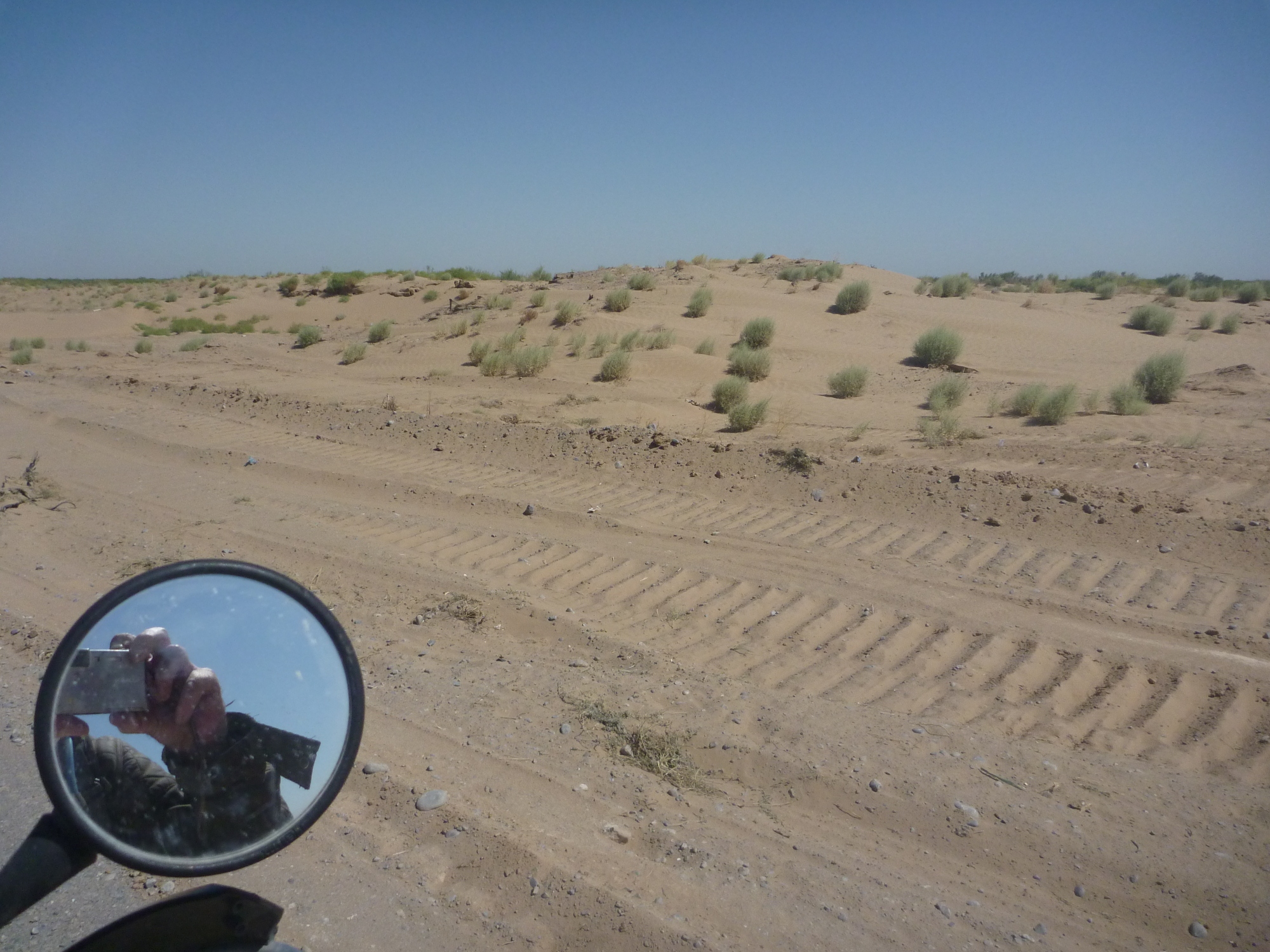 I said a fond farewell to friendly folk at the Yrsgal Hotel and set off to ride the 70km to the little town of Hanhowuz where I would have to make my final decision about my route. The landscape along the way was a continuation of yesterday’s desert dunes.