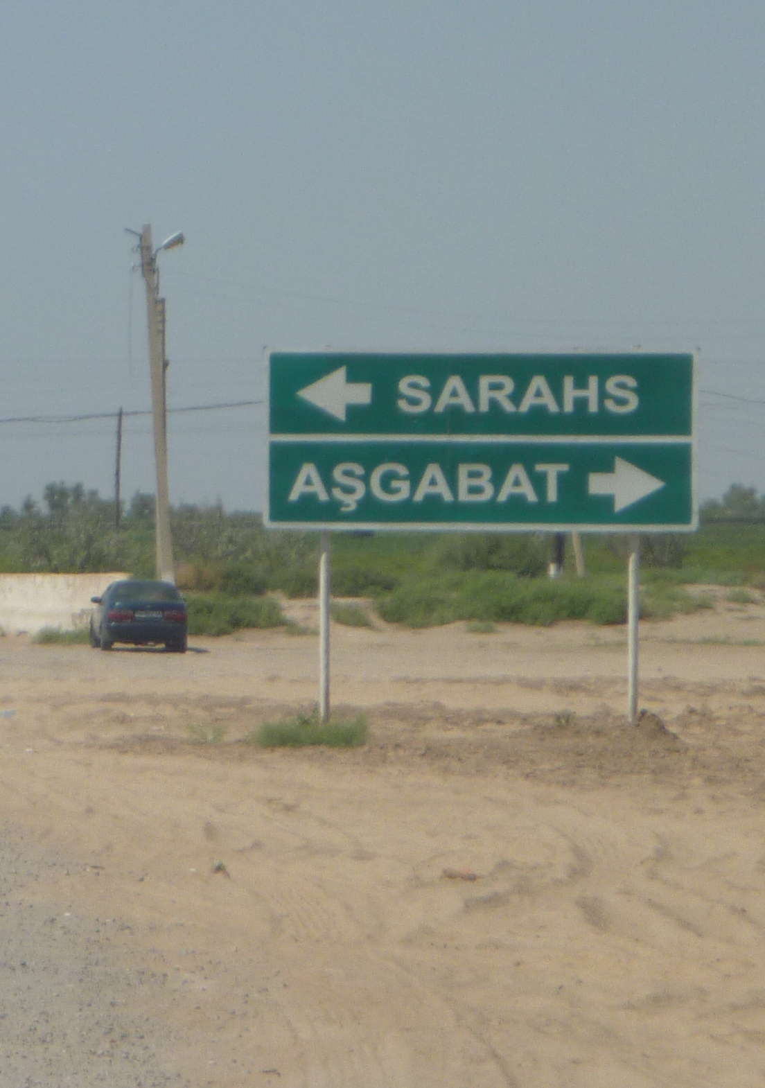And I was glad I chose the easy option because after about 70 km, at the turn-off just outside Tejen, I would have missed a rare sight – the first roadsign since the border crossing at Farap on the other side of the country! From the turn-off it was about 130km to dusty little border town of Sarahs. In less than 2hrs I would be at the Iran border and my travels and travails in Turkmenistan would be over.